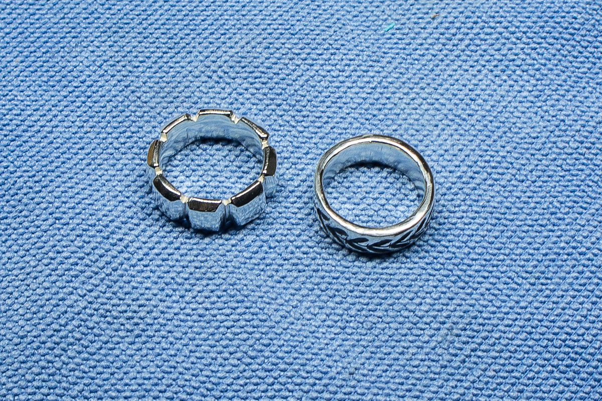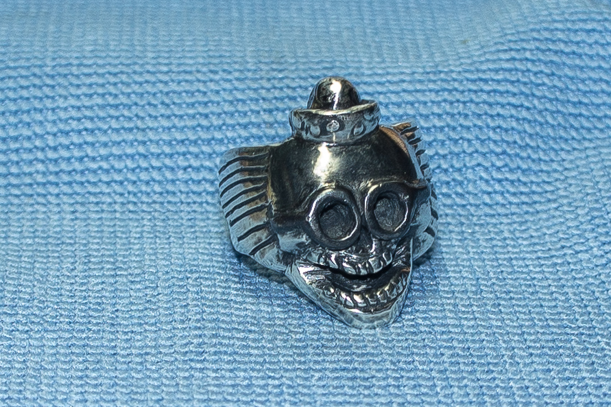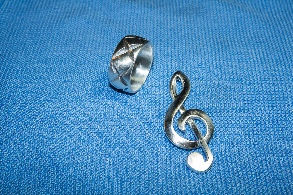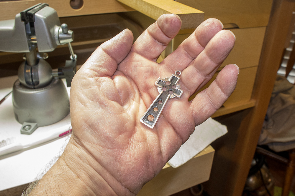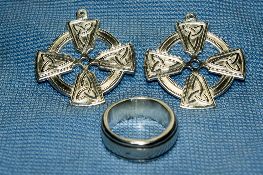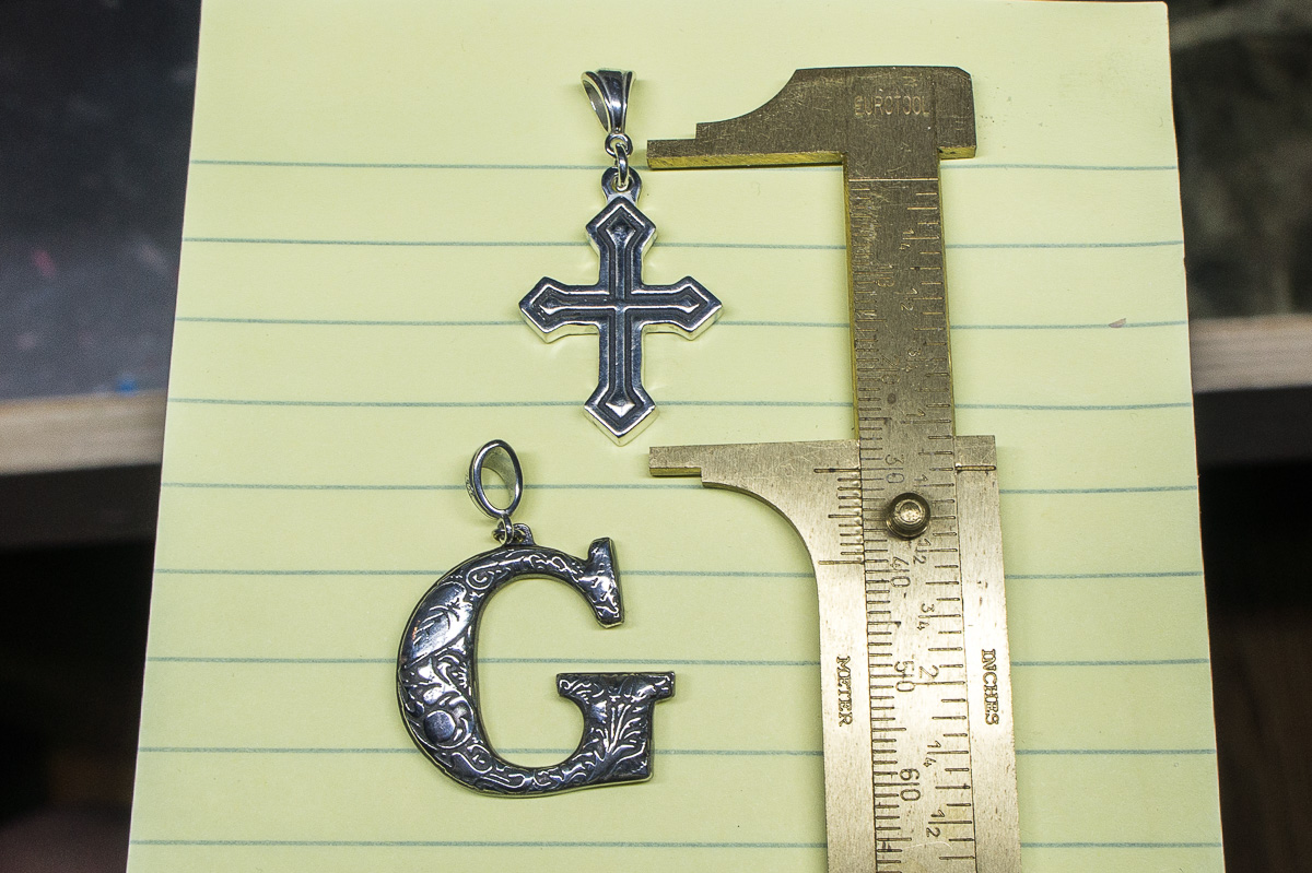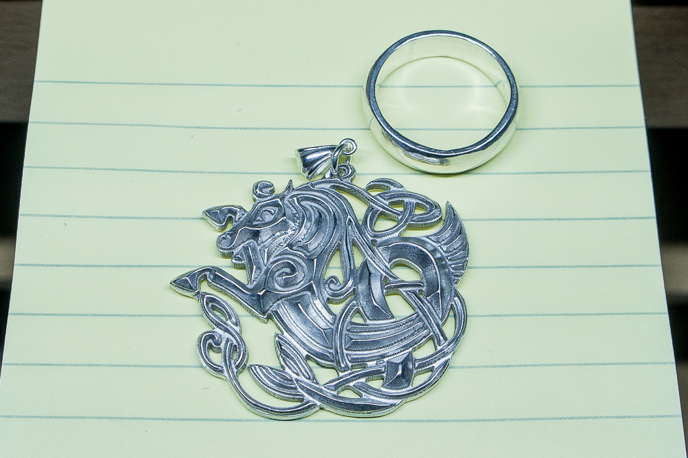 This is a example of my current work in Lost Wax Casting of Sterling Silver. Some of these items are 100% hand carved in wax while the more finely detailed are machined in wax with 3 or 4 axis CNC mill. The wax masters are then used (one time) to create molds for casting the designs in silver. The wax master is burned away and lost.